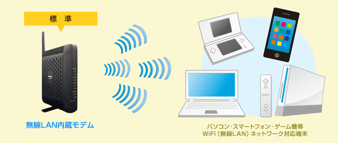 パソコンだけでなく、スマートフォンやWi-Fi対応の携帯電話、ゲーム機やHDDレコーダーなどさまざまな機器をWi-Fi無線LANネットワークにつないで快適で便利にご利用いただけます。