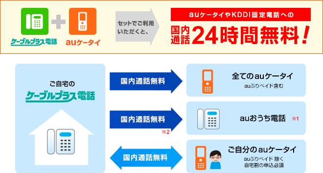 au携帯電話ご契約者のご自宅電話番号にケーブルプラス電話をご登録の場合適用されます。