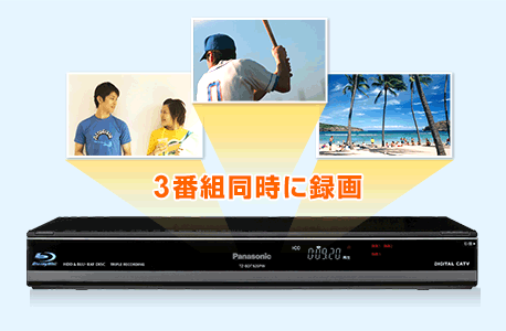 放送時間が重なった番組を3番組同時に録画することが可能です。また、2つの番組を録画しながら、他の番組を楽しむことも出来ます。見たい番組、録りたい番組が重なっても困ることはありません。