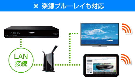 「楽録ブルーレイ」「楽録1TB」ならDLNA対応のテレビやタブレットなどでBS・CS放送がご覧いただけます。